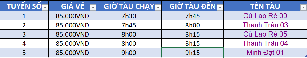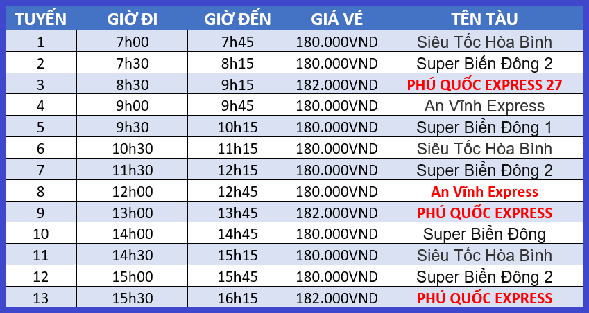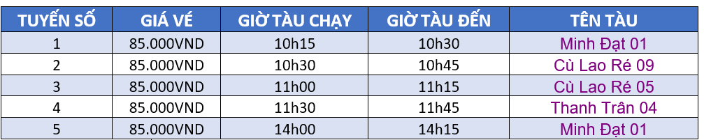 Lưu ý: Lịch và giờ tàu có thể thay đổi liên tục. Quý khách vui lòng liên hệ hotline: 0934299494 để được tư vấn chi tiết nhất. Xin cảm ơn!